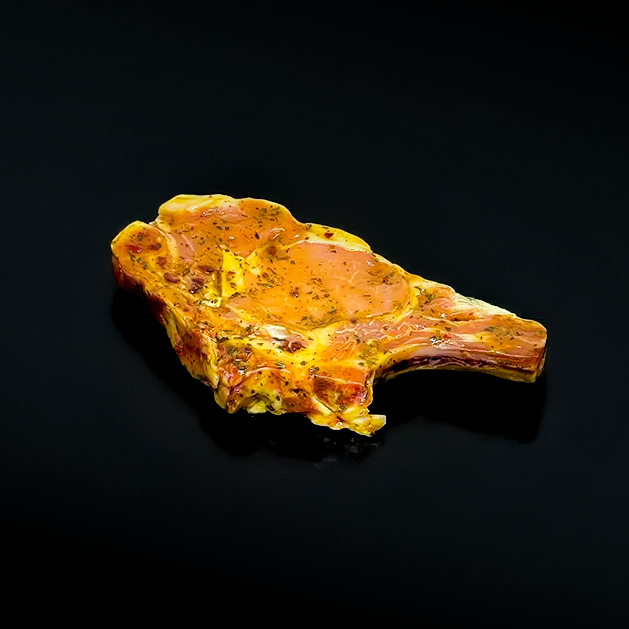 La côte de veau marinée, à la chair tendre et délicate, sublimée par une marinade savoureuse qui réhausse naturellement le goût de la viande.